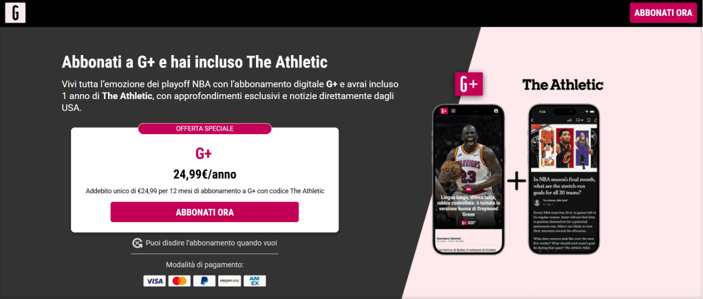 G+ integra The Athletic: l’offerta digitale della Gazzetta diventa internazionale