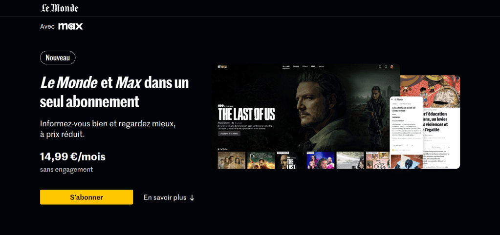 L’unione tra informazione e intrattenimento trova una sintesi efficace nella recente integrazione tra Le Monde e la piattaforma di streaming Max, lanciata nell’aprile 2025. Con un solo abbonamento mensile, gli utenti accedono sia alle proposte editoriali premium del quotidiano sia all’intrattenimento video della piattaforma, traendo vantaggio da una proposta integrata che accresce maggiormente il valore strategico dell’abbonamento nell’evoluzione del prodotto editoriale.