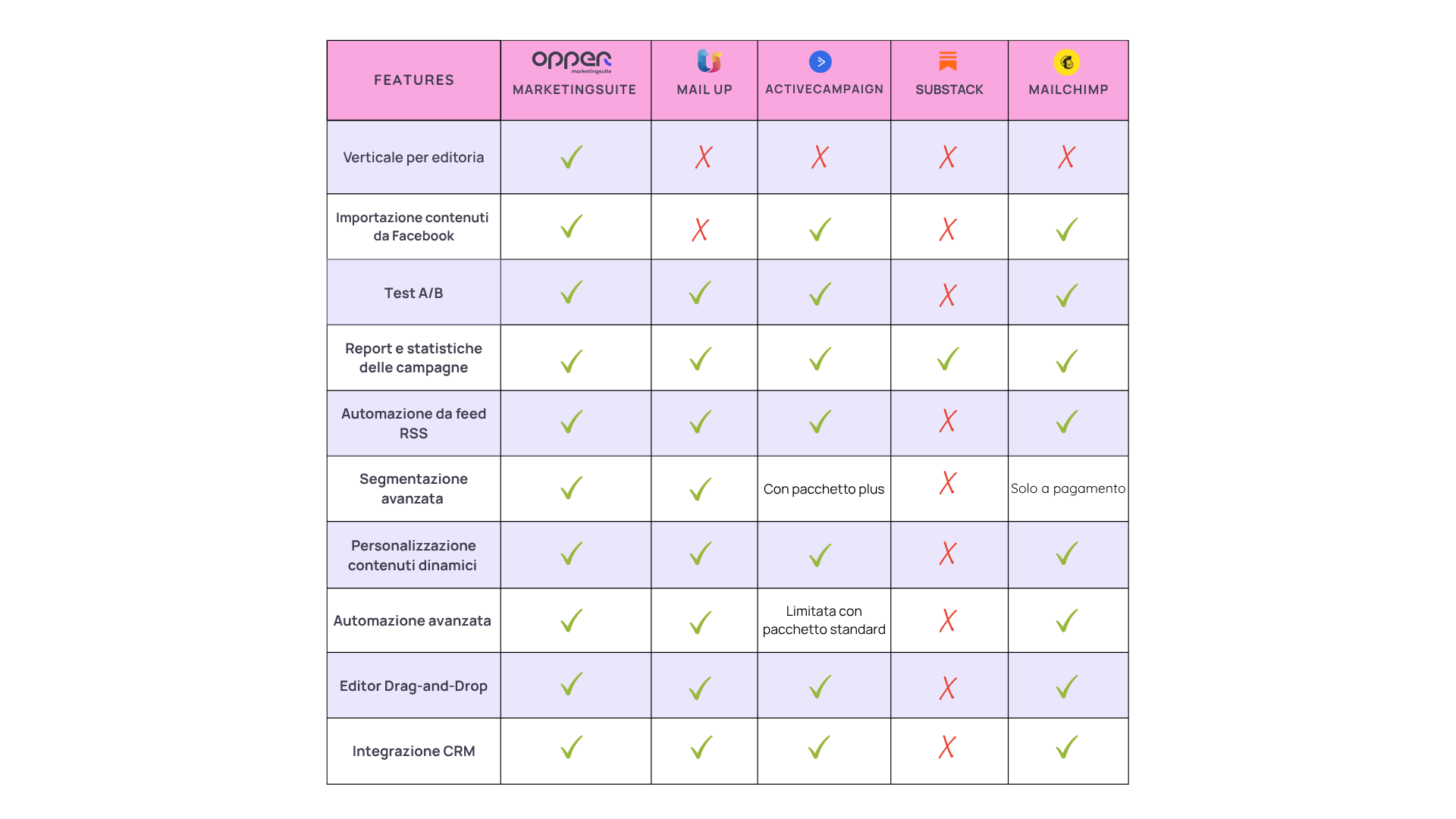 - Interfaccia meno intuitiva per chi è alle prime armi, soprattutto in ambito di automazione e segmentazione dinamica.